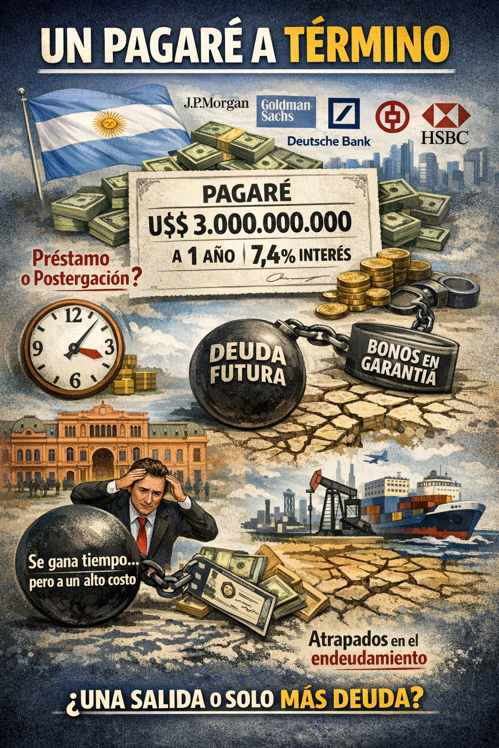 Pero ese tiempo no es gratuito. El préstamo tiene un plazo de poco más de un año y una tasa anual del 7,4%, que si bien es menor a la de operaciones previas, sigue siendo elevada para un país con fragilidad estructural y antecedentes de crisis recurrentes. Además, se entregaron como garantía bonos soberanos en dólares, comprometiendo activos futuros para resolver urgencias del presente.